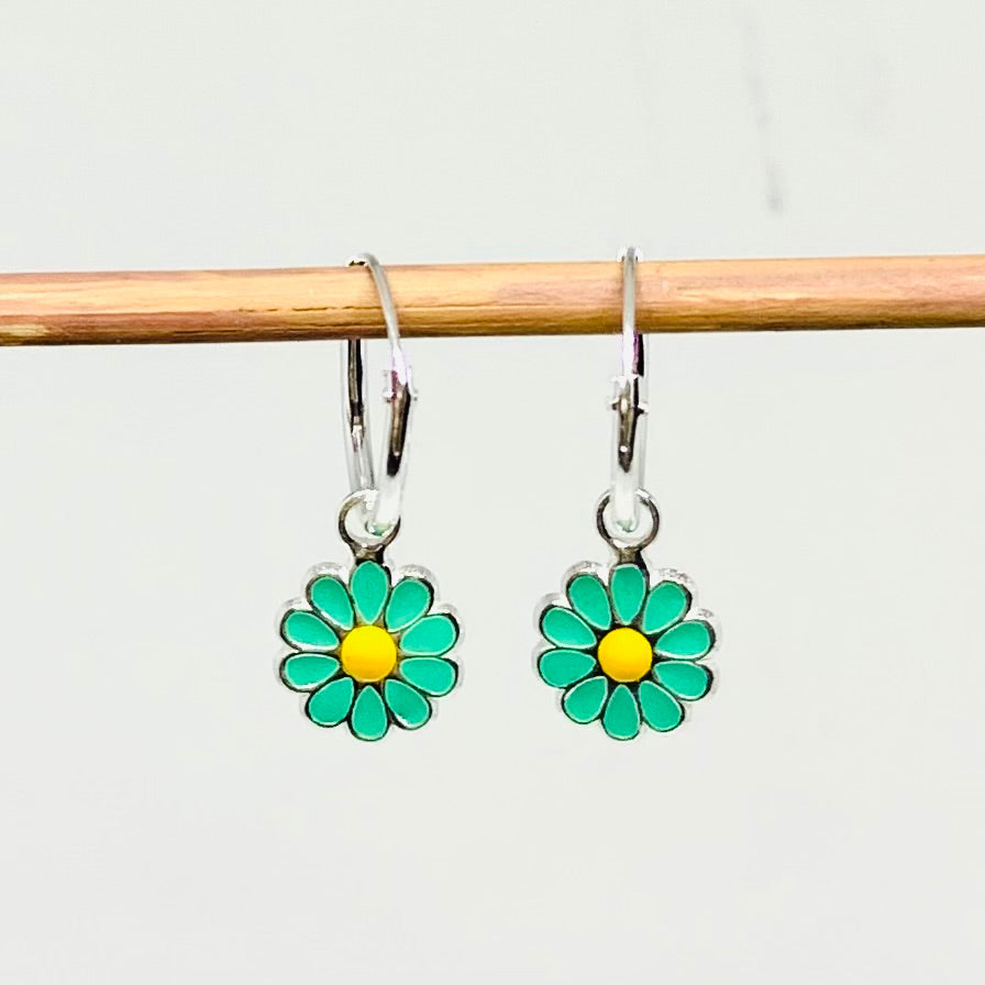 Zilveren oorringen emaille "bloem" turquoise